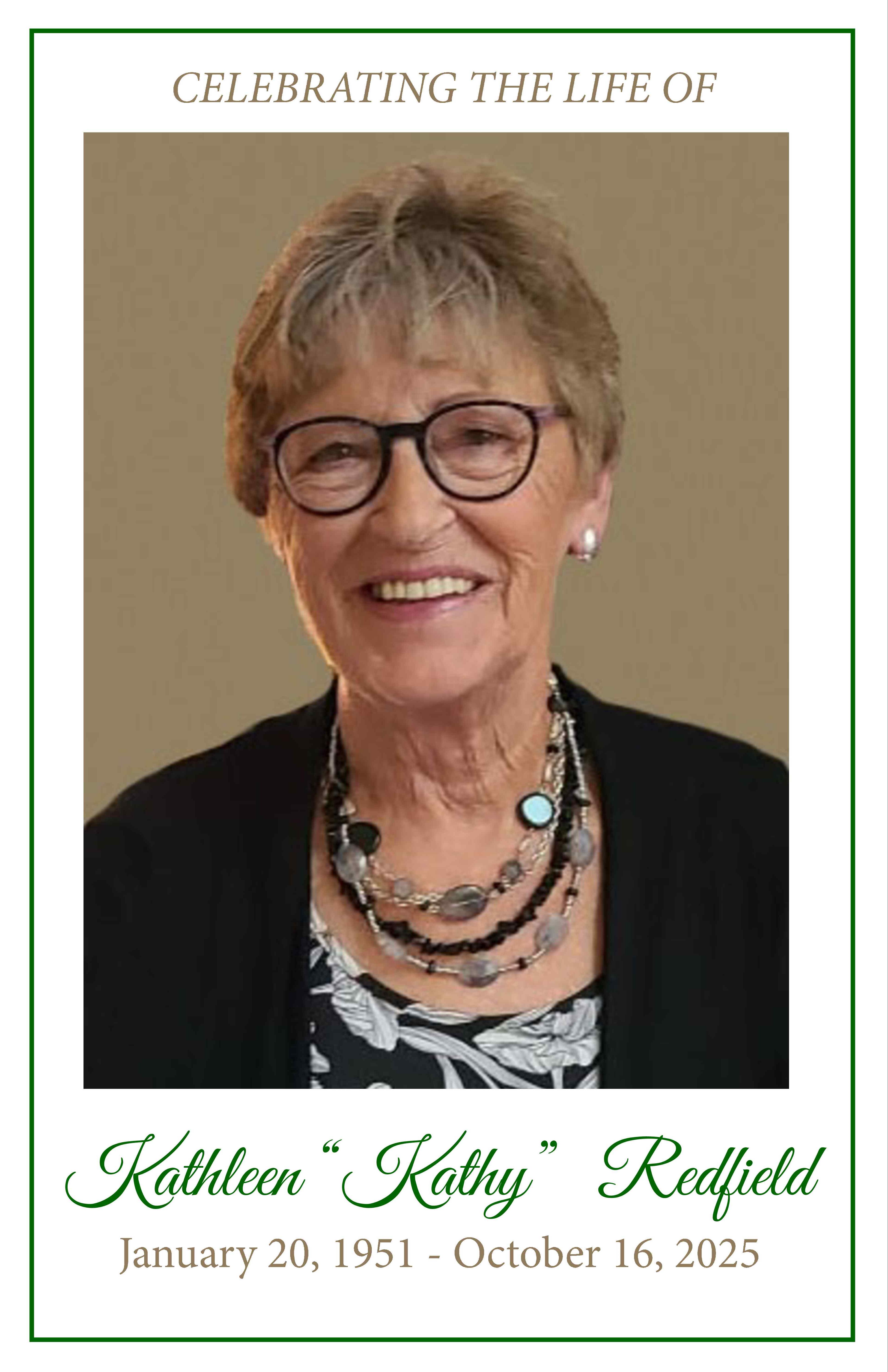 Kathleen “Kathy” Rose Redfield was born January 20, 1951, in Glendive, Montana to Thomas and Vivian (Fercho) Murphy. She attended St. Paul Lutheran Church in Beach, North Dakota and graduated from Beach High School in 1969. After high school, she continued her education in Accounting at Interstate Business College in Fargo, North Dakota, and graduated in 1971.