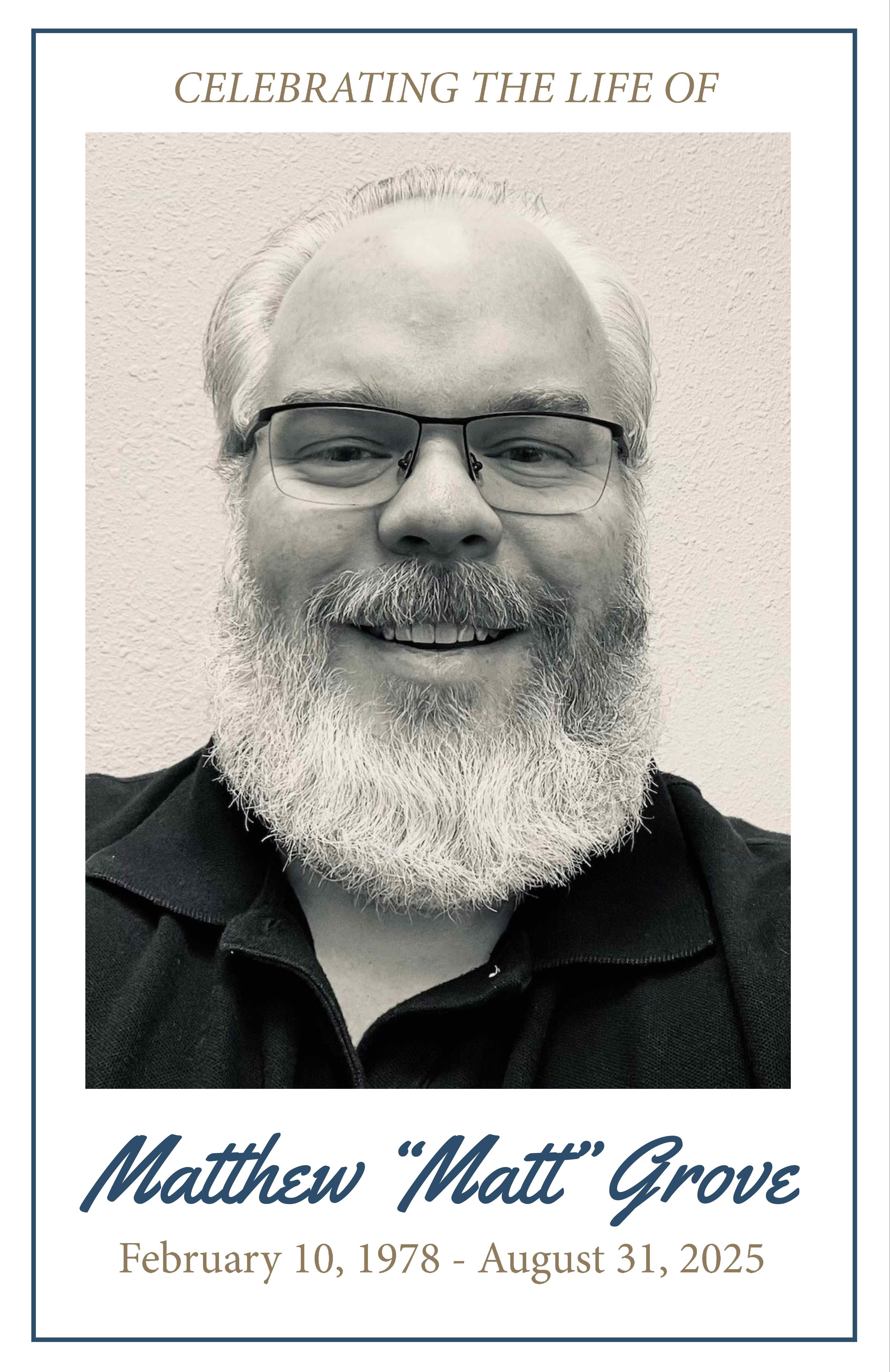 Matthew “Matt” Grove, 47, of Fargo, ND, passed away Sunday, August 31, 2025, in his home.